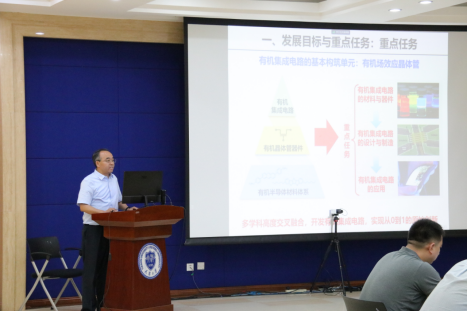 实验室主任、天津大学常务副校长胡文平就实验室建设计划方案进行详细汇报。胡文平表示,根据《十四五规划》、发展集成电路是具有前瞻性、战略性的国家重大科技项目。作为我国被西方“卡脖子”的硅基电路的补充,新型电路是从0到1发展的原始创新技术,有机集成电路是新型电路的重要组成部分。作为有机集成电路的核心材料,有机半导体材料具有本征柔性、可设计合成、独特光电性质等优势。有机集成电路应用于柔性显示,可面向经济主战场,有望实现万亿市场;应用于可穿戴电子,可面向人民生命健康,实现健康监测;应用于柔性脑机接口,可面向世界科技前沿,实现精细运动意图识别。实验室计划建立多学科高度交叉融合的教育高地,形成材料器件、设计制造、应用转化的全链条研究,奠定我国在有机集成电路领域的国际领先地位。