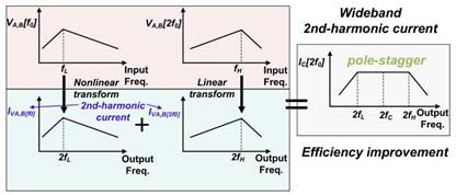 同时,团队首次提出基波与二次谐波极点交错技术,在输入匹配网络中分别对基波信号和二次谐波反馈电压进行极点优化,成功实现了超宽工作带宽与高效率的协同提升。