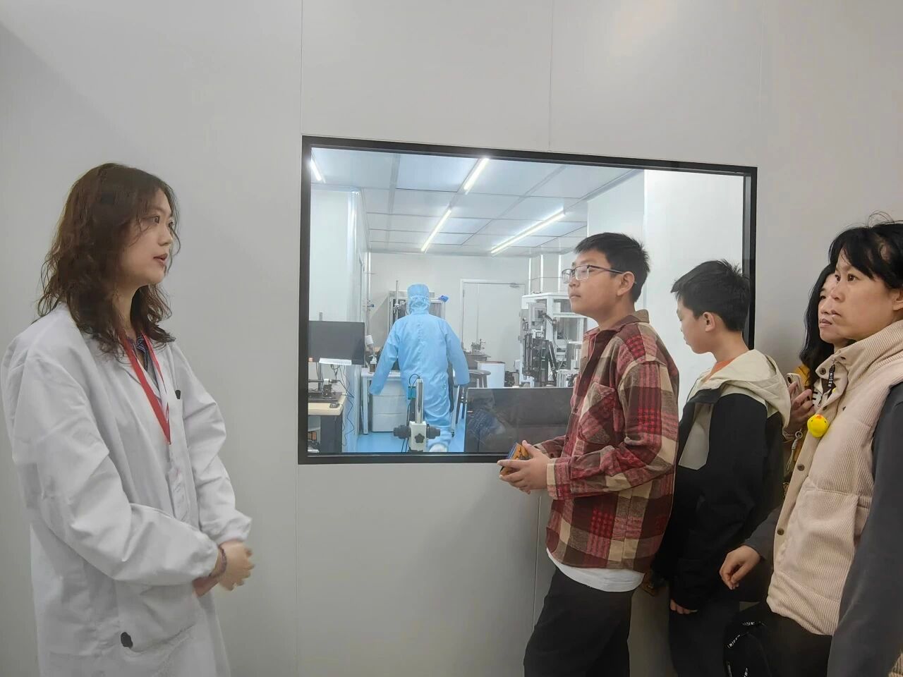 来访游客在研究生志愿者的详细讲解下,直观感受了超高透明、超高分辨的柔性显示技术,可检测健康状况的柔性电子皮肤,自主搭建的精密设备等最新研究成果以及超净间等先进的科研平台。访客不禁感叹:“太好玩了!”“没看够啊!”“还想再来”。