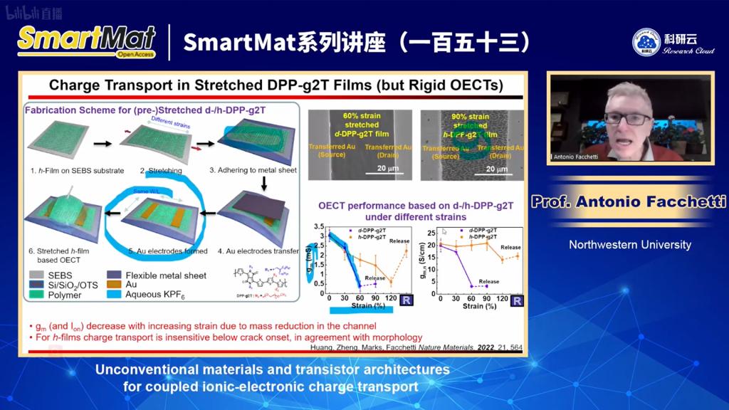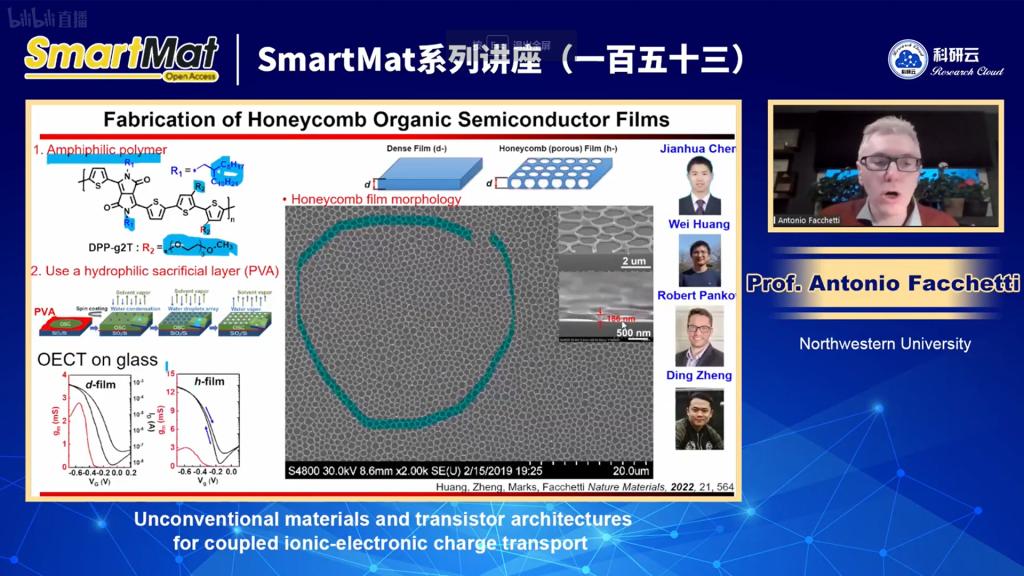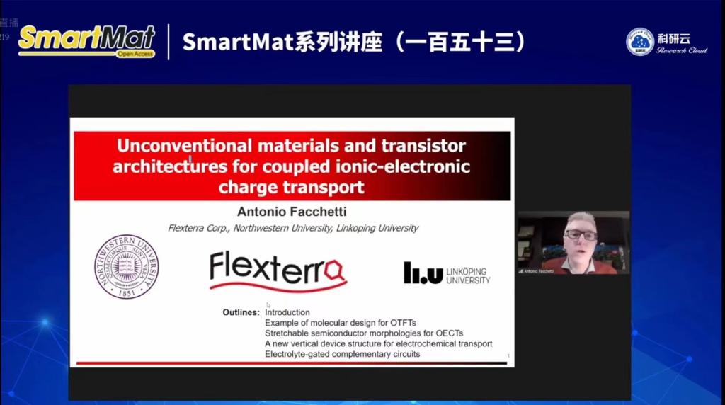 2023年1月3日,受天津大学胡文平教授邀请,美国西北大学Antonio Facchetti教授通过bilibili(哔哩哔哩)、微博等平台同步直播了题目为“Unconventional materials and transistor architectures for coupled ionic-electronic charge transport”的学术报告。