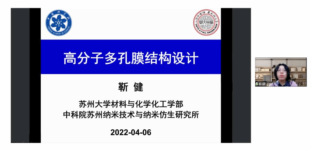 2022年4月6日,受天津大学胡文平教授及香港城市大学张华教授邀请,苏州大学靳健教授通过bilibili(哔哩哔哩)、百度、YouTube等直播平台同步直播了题目为“高分子多孔膜结构设计”的学术报告。