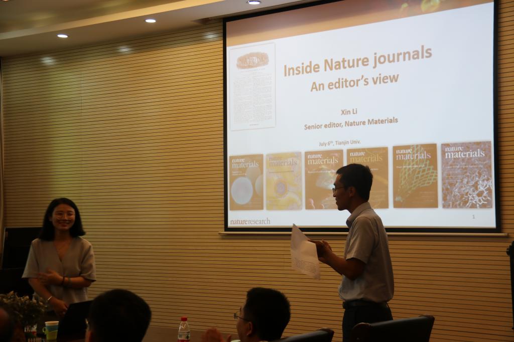 2021年7月6日,受胡文平教授邀请,Nature Materials副主编李昕博士做客天津市分子光电科学重点实验室,向师生做了题为“Inside Nature Journals”的报告。
