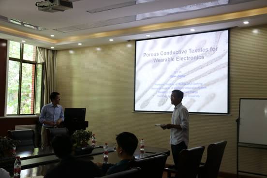 2021年6月15日,受胡文平教授邀请,香港理工大学郑子剑教授做客天津市分子光电科学重点实验室,向师生做了题为“Porous Conductive Textiles for Wearable Electronics”的学术报告。