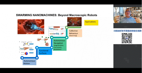 11月19日,受 SmartMat编委会、天津市分子光电科学重点实验室、科研云、能源学人邀请,捷克布拉格化学技术大学Martin Pumera教授通过bilibili(哔哩哔哩),百度,YouTube等直播平台同步直播了题目为“Nanorobots: Machines of the size of the viruses and cells”的学术报告。Pumera教授在本次讲座中讨论了自主推进和远程驱动的纳米/微型机器人如何运动、感知和协作,提供了微型、纳米机器人在显微手术、环境清理和铀矿开采方面的生物医学应用实例。本次讲座得到了广泛关注,bilibili、百度直播、YouTube等平台累积观看人数超过4.2万,观众反响热烈。